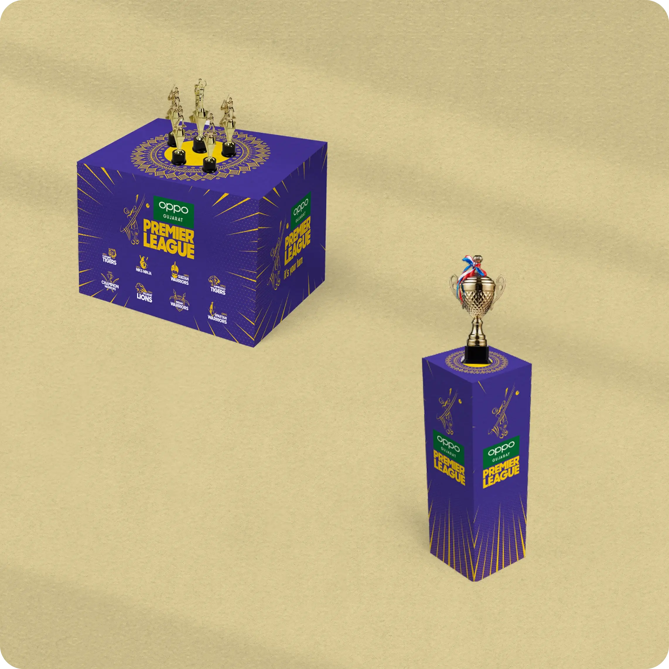OPPO Premier League brought cricket excitement into branding with bold visuals, dynamic team identities, and vibrant event setups. From logos to trophies and stage design, the campaign captured energy, passion, and celebration.
